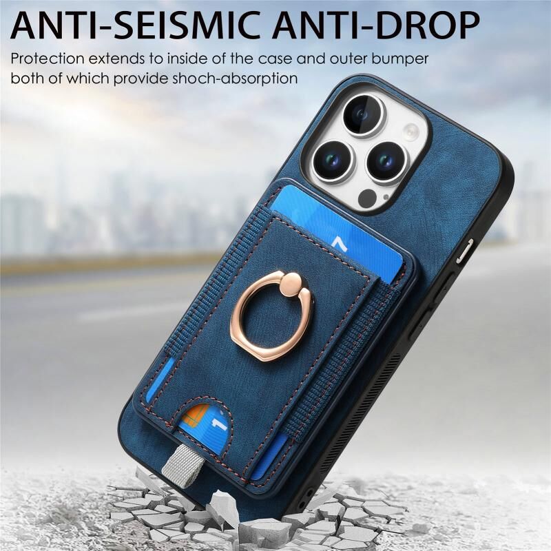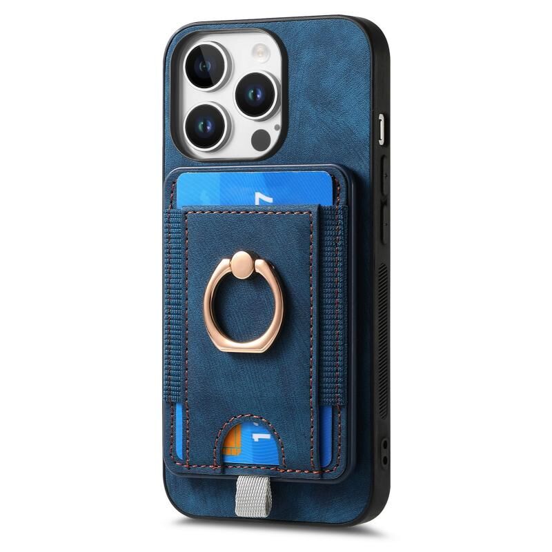 Για iPhone 16 Pro Max Retro Splitable μαγνητική τσάντα κάρτα τσάντα δέρμα υπόθεση τηλεφώνου (μπλε)