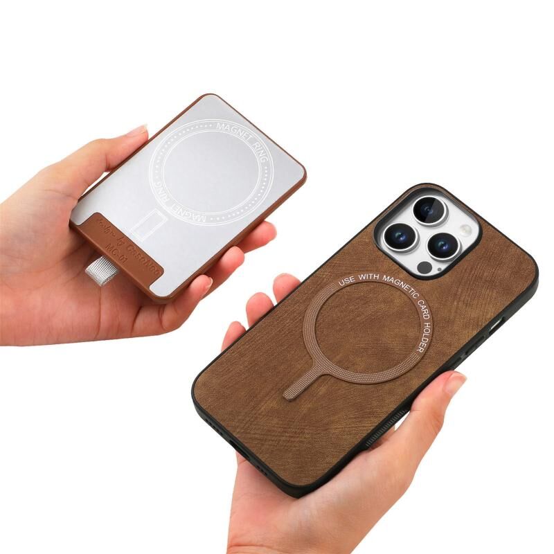 5. Το δερμάτινο πορτοφόλι διαθέτει ισχυρούς ενσωματωμένους μαγνήτες που του επιτρέπουν να κουμπώνει αβίαστα στη θέση του στο πίσω μέρος του τηλεφώνου σας, εύκολο στη χρήση και την αφαίρεση.