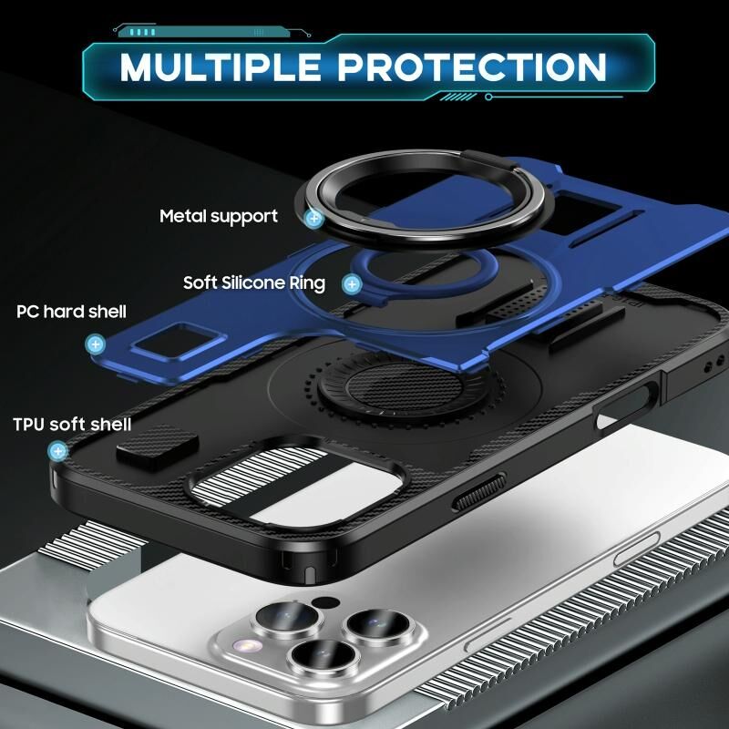 3. Δακτύλιος Σιλικόνης και Βάση: Δεν παρέχει μόνο βασική προστασία, αλλά η θήκη λειτουργεί και ως λαβή για να κρατάτε σταθερά το τηλέφωνό σας. Και ως βάση τηλεφώνου που επιτρέπει την κατακόρυφη ή οριζόντια λειτουργία σε πολλαπλές γωνίες.