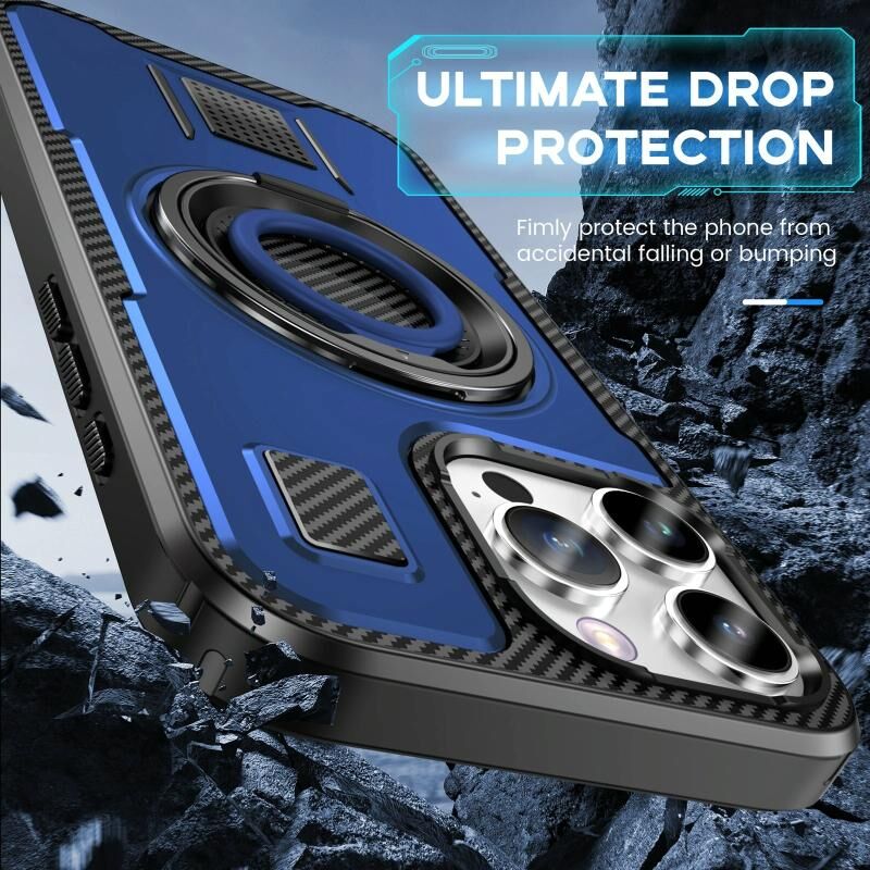 Θήκη τηλεφώνου για iPhone 16 Pro Max με δακτύλιο στήριξης, υβριδική από ανθρακονήματα PC και TPU (Λευκό)