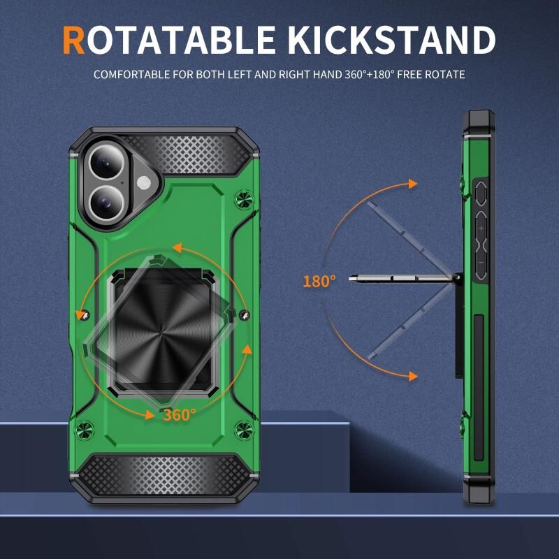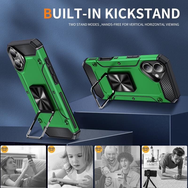 Θήκη τηλεφώνου για iPhone 16 Pro Max ανθεκτική στις κρούσεις με μεταλλική βάση στήριξης (Χακί Πράσινο)