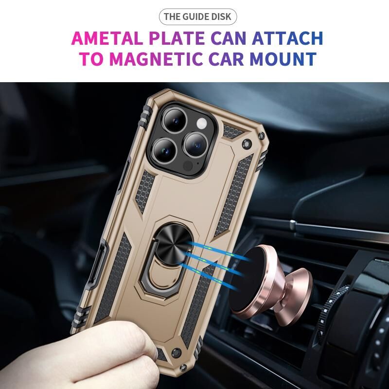 For iPhone 16 Pro Max Shockproof TPU Hybrid PC Phone Case with Holder(Gold)