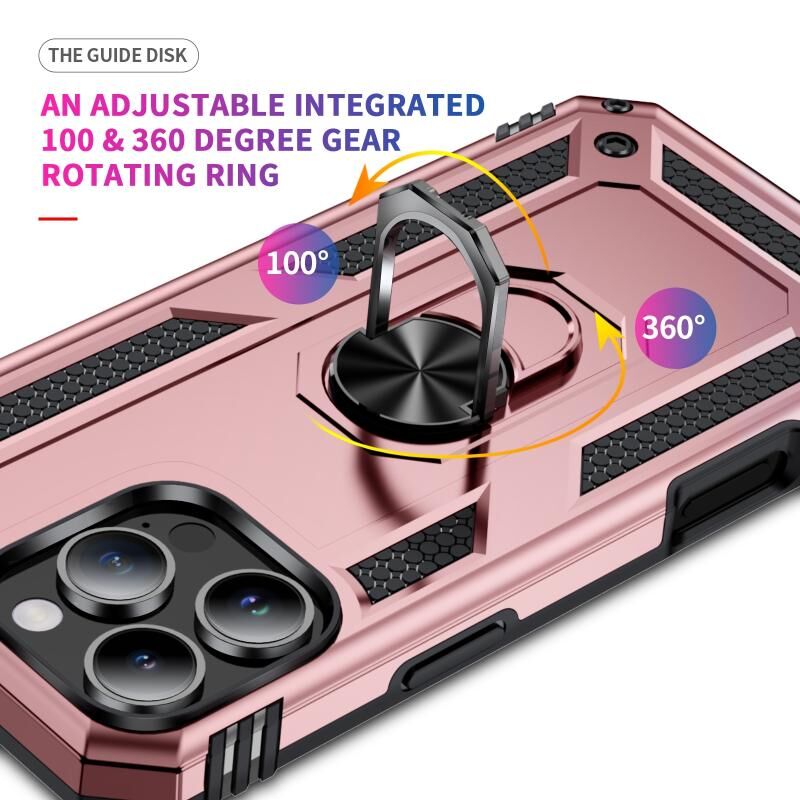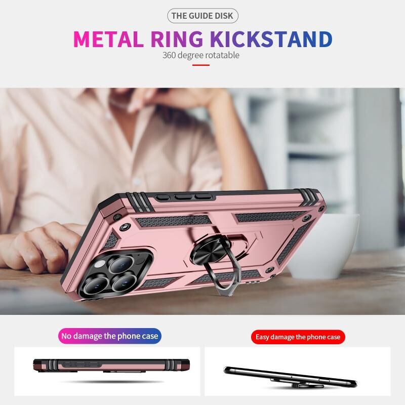 Θήκη για iPhone 16 Pro Max ανθεκτική στις κρούσεις, υβριδική από TPU και PC με βάση στήριξης (Ροζ χρυσός)