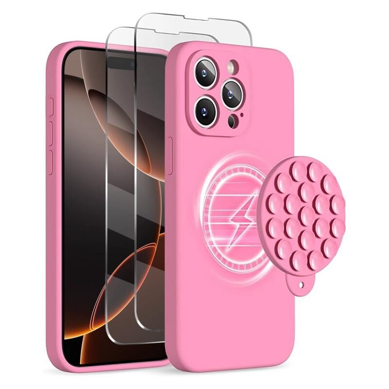 Θήκη τηλεφώνου MagSafe από σιλικόνη με βεντούζα για iPhone 16 Pro Max με προστατευτική μεμβράνη οθόνης (Ροζ)