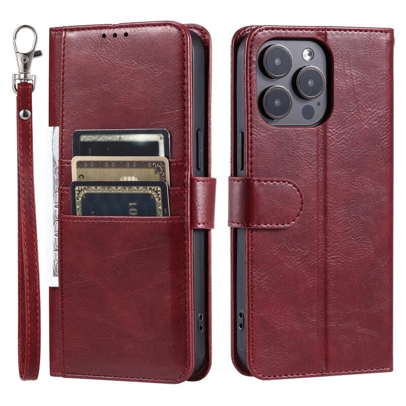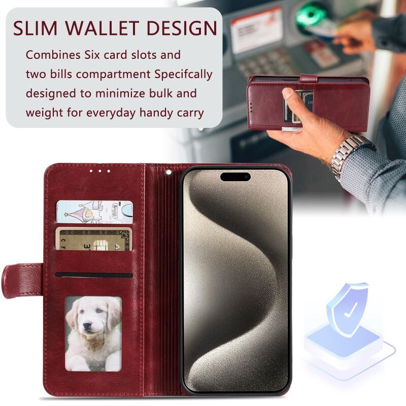 For iPhone 16 Pro Max Simple 6-Card Wallet Leather Phone Case(Wine Red)