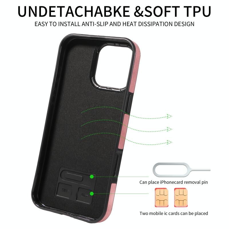Θήκη τηλεφώνου για iPhone 16 Pro Max με αίσθηση δέρματος και θήκη καρτών με αγκράφα δακτυλιδιού (Χρυσό ροζ)