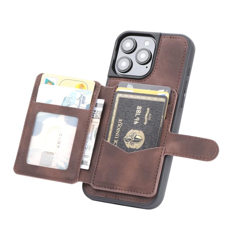 For iPhone 16 Pro Max Skin Feel Dream RFID Anti-theft PU Card Bag Phone Case(Coffee)