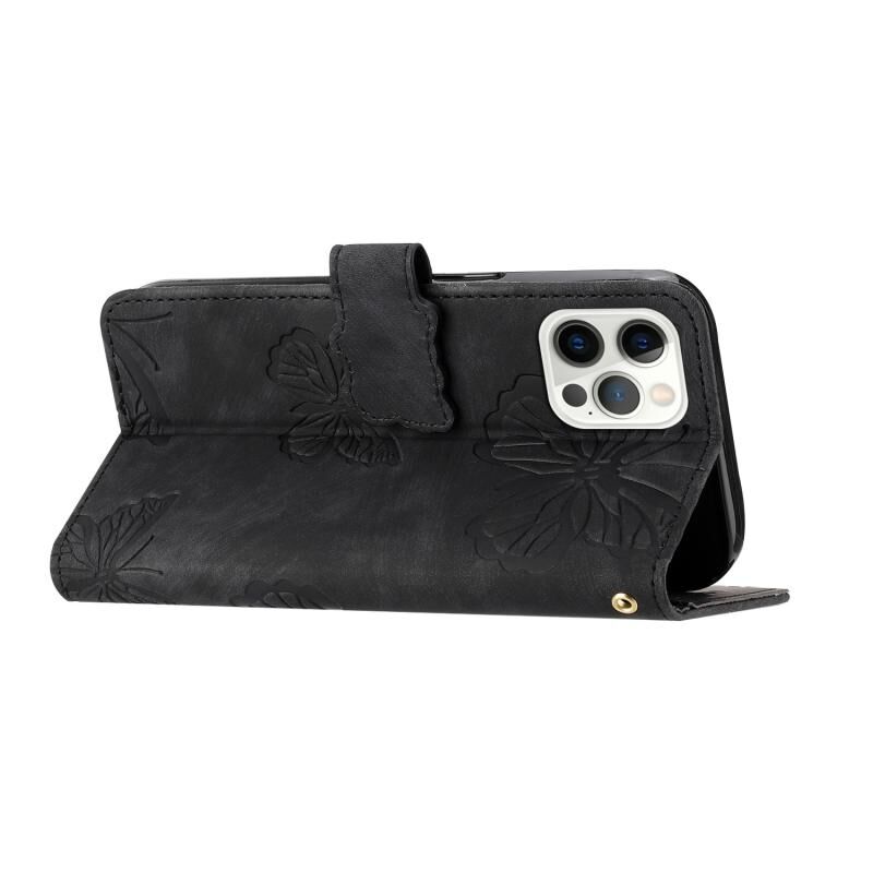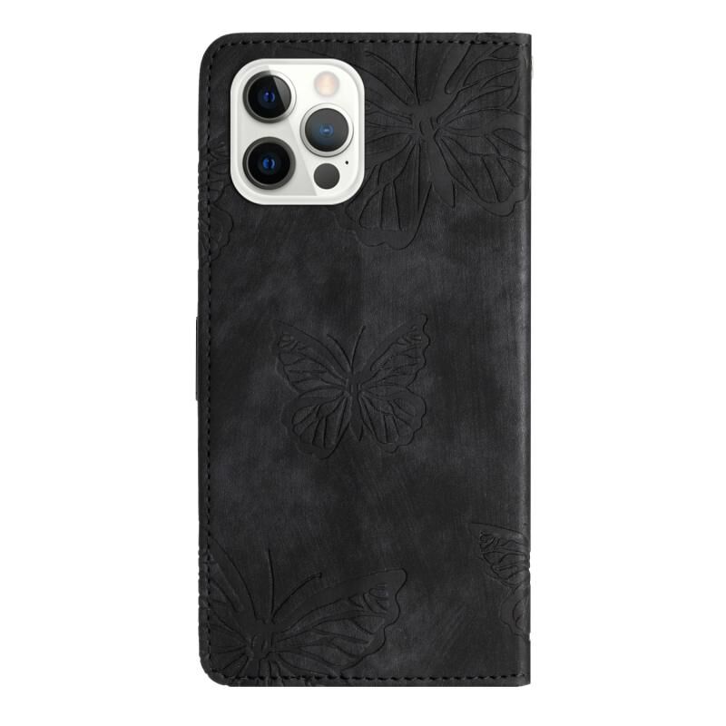 For iPhone 16 Pro Max Skin-feel Embossed Butterfly Leather Phone Case(Black)