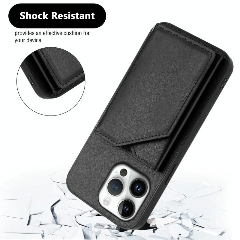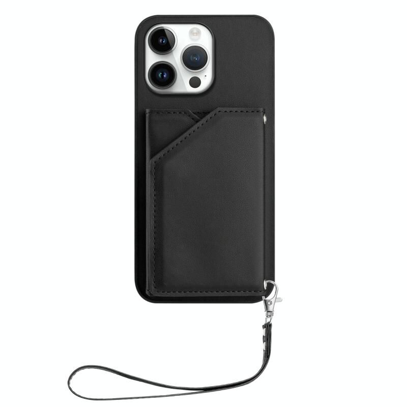 Θήκη τηλεφώνου για iPhone 16 Pro Max με αίσθηση δέρματος, τέσσερις θήκες για κάρτες και λουρί καρπού (Ροζ)