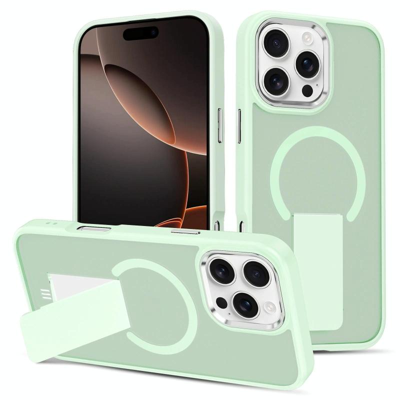 For iPhone 16 Pro Max Skin Feel Invisible Kickstand MagSafe Phone Case(Green)