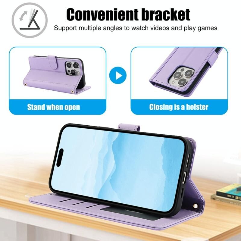 Θήκη τηλεφώνου από δέρμα με καθαρό χρώμα και υποδοχές καρτών για iPhone 16 Pro Max, με διπλό κορδόνι (Μαύρο)