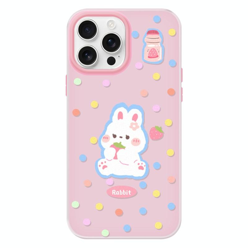 For iPhone 16 Pro Max Skin Feeling Jelly TPU Hybrid PC Phone Case(Polka Dot Rabbit Pink)