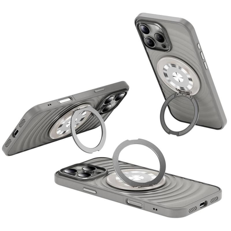 For iPhone 16 Pro Max Skin Ripples MagSafe Holder Phone Case(Titanium Gray)