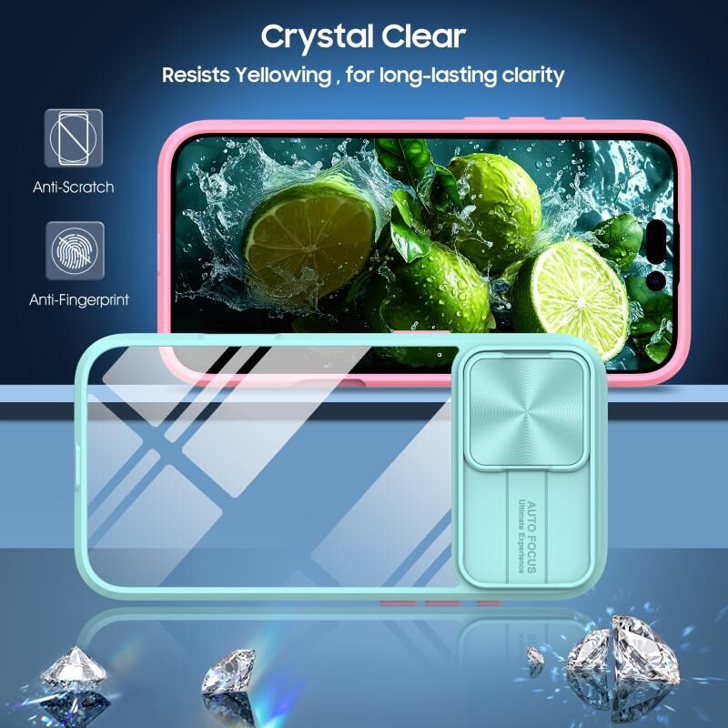 Θήκη τηλεφώνου για iPhone 16 Pro Max με συρόμενο προστατευτικό κάμερας, υβριδική από ακρυλικό και TPU (Μπλε Ροζ)