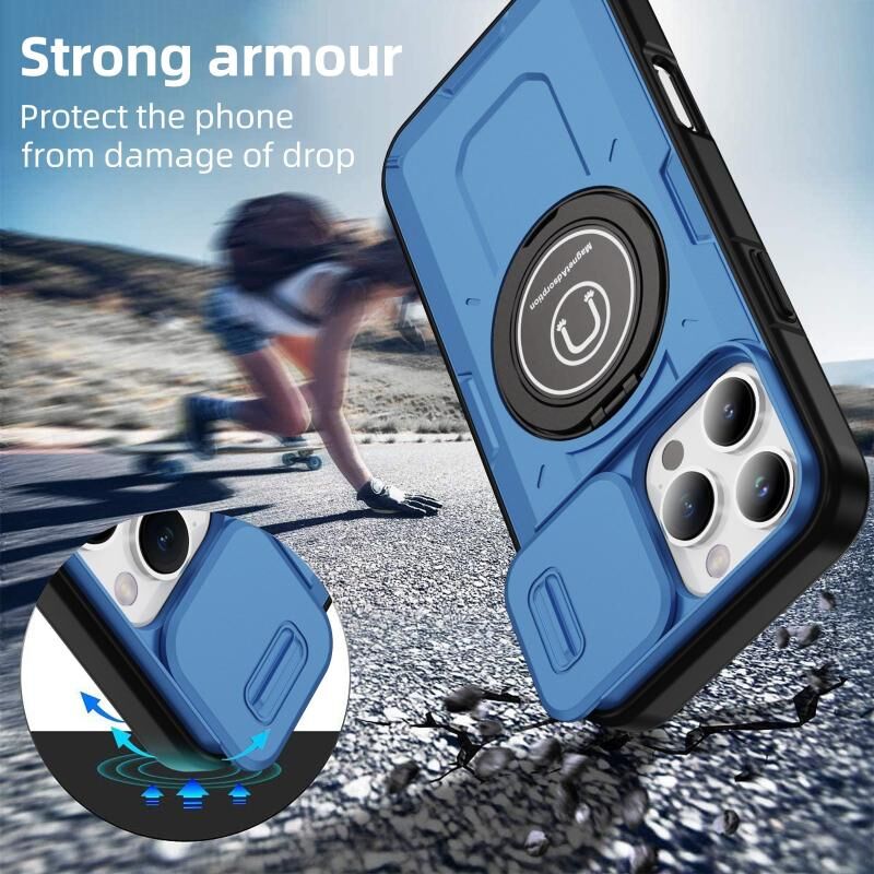 For iPhone 16 Pro Max Sliding Camshield TPU Hybrid PC Magnetic Holder Phone Case(Sky Blue)