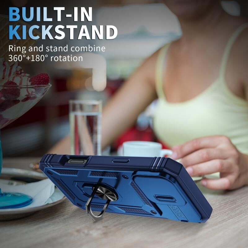 Θήκη τηλεφώνου για iPhone 16 Pro Max με συρόμενο προστατευτικό κάμερας από TPU + PC και βάση στήριξης (Λευκό+Μαύρο)