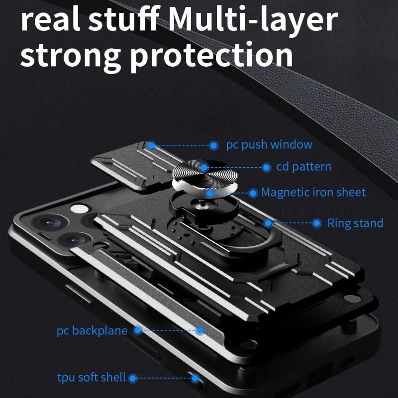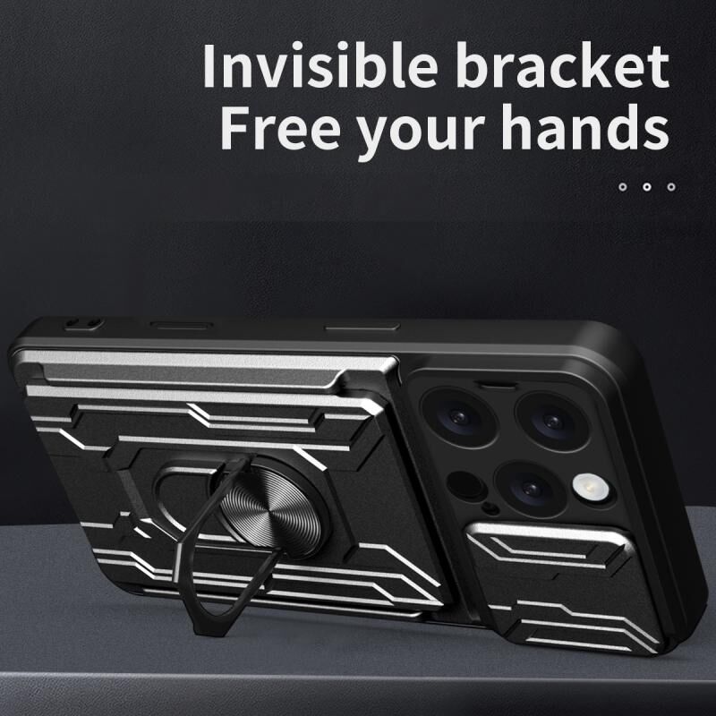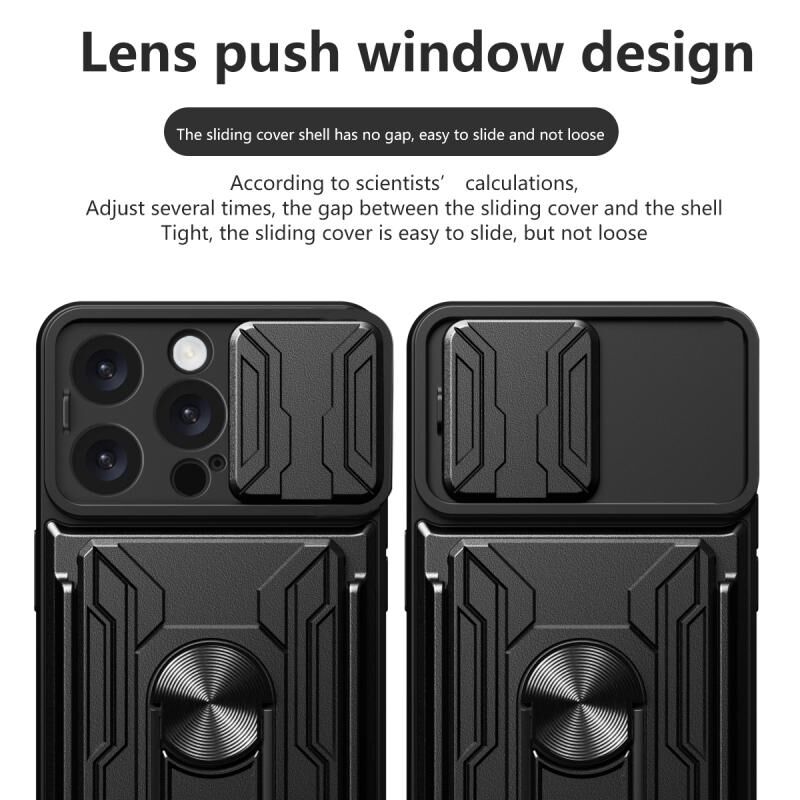 Θήκη τηλεφώνου για iPhone 16 Pro Max με συρόμενο προστατευτικό κάμερας, κατασκευασμένη από TPU+PC και θήκη για κάρτες (Κόκκινο)