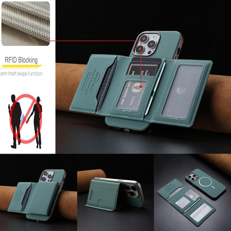 2. Magnetic Tri-Fold Wallet Design: Features a horizontal fold with a strong magnetic closure for easy access and secure storage.