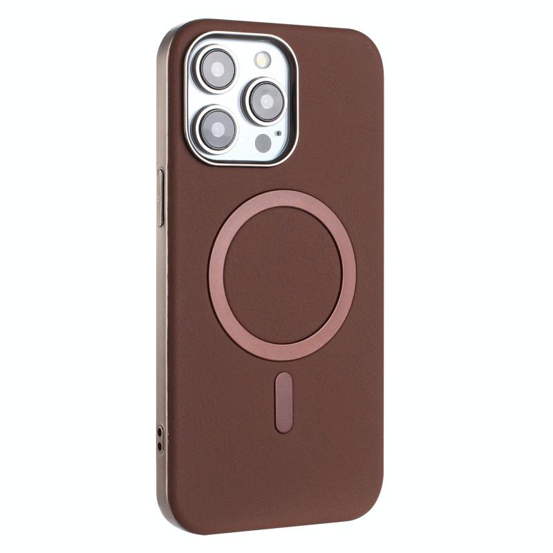 For iPhone 16 Pro Max Solid Color Plating MagSafe Full Coverage Phone Case(Brown)