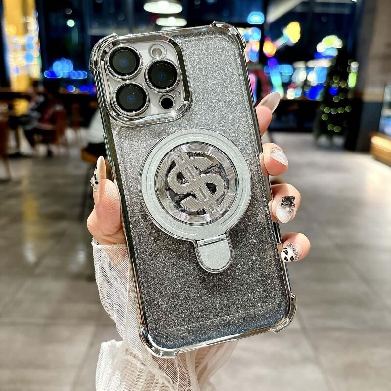 Θήκη τηλεφώνου με βάση MagSafe και προστατευτική μεμβράνη φακού για iPhone 16 Pro Max, με διαβαθμισμένη λάμψη Space Gradient (Τιτανίου Γκρι).