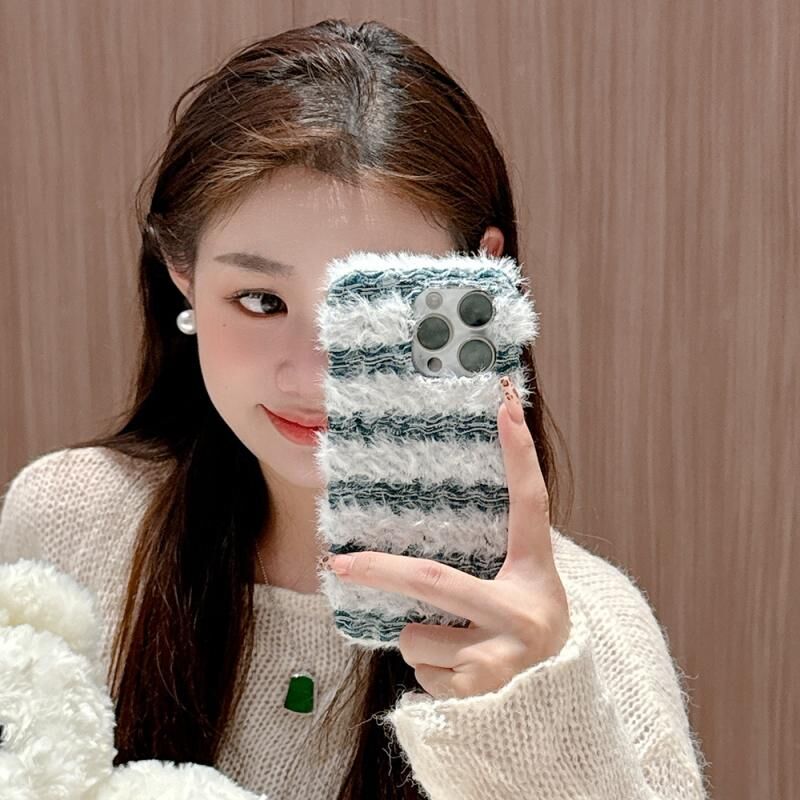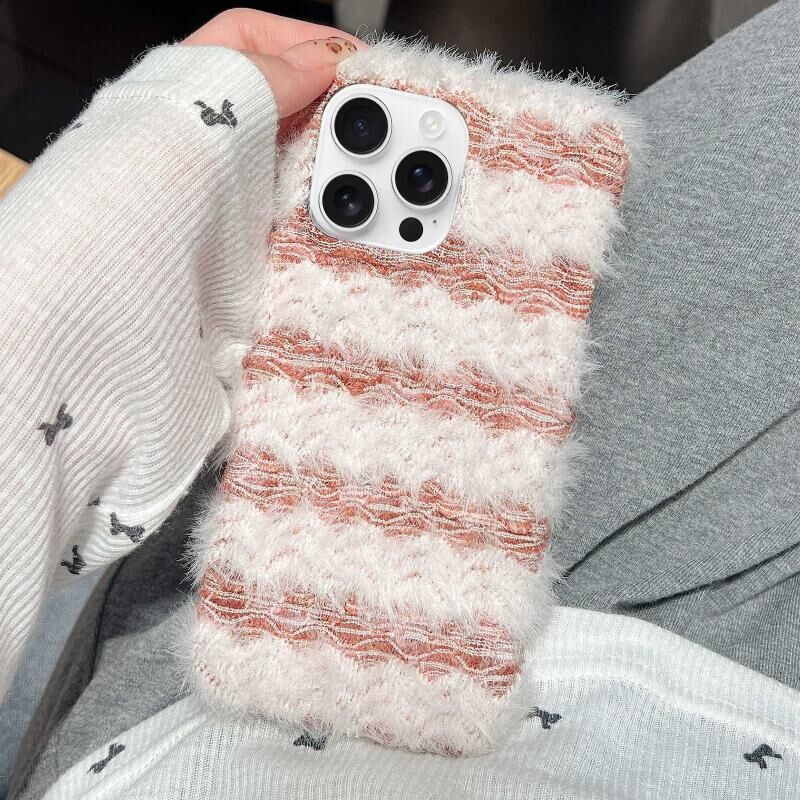 Θήκη τηλεφώνου από βελούδο με υφασμάτινη ρίγα για iPhone 16 Pro Max (ρόζ)
