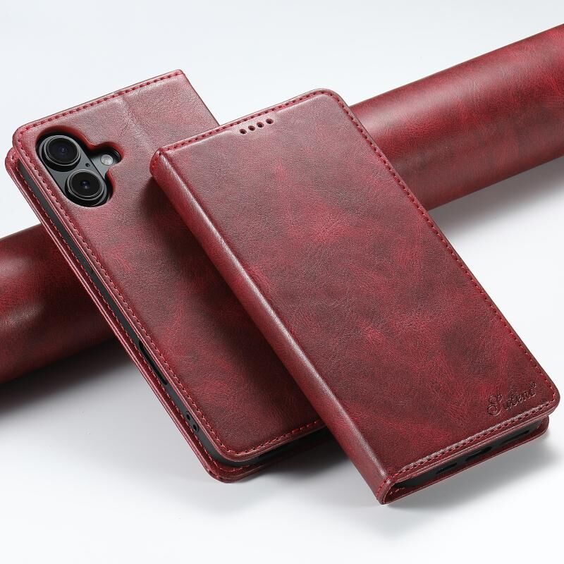 Θήκη τηλεφώνου από δέρμα με κερί λαδιού Suteni J02 για iPhone 16 Pro Max (Μαύρο) (Suteni)