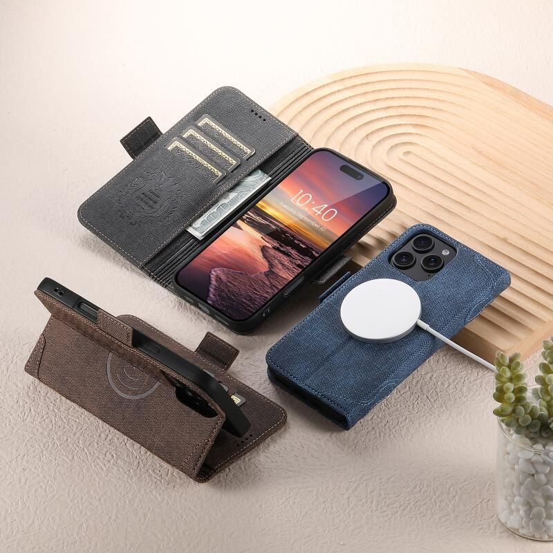 Θήκη τηλεφώνου Suteni J07 πολυλειτουργική οριζόντια MagSafe από δέρμα τζιν για iPhone 16 Pro Max (Μαύρο) (Suteni)