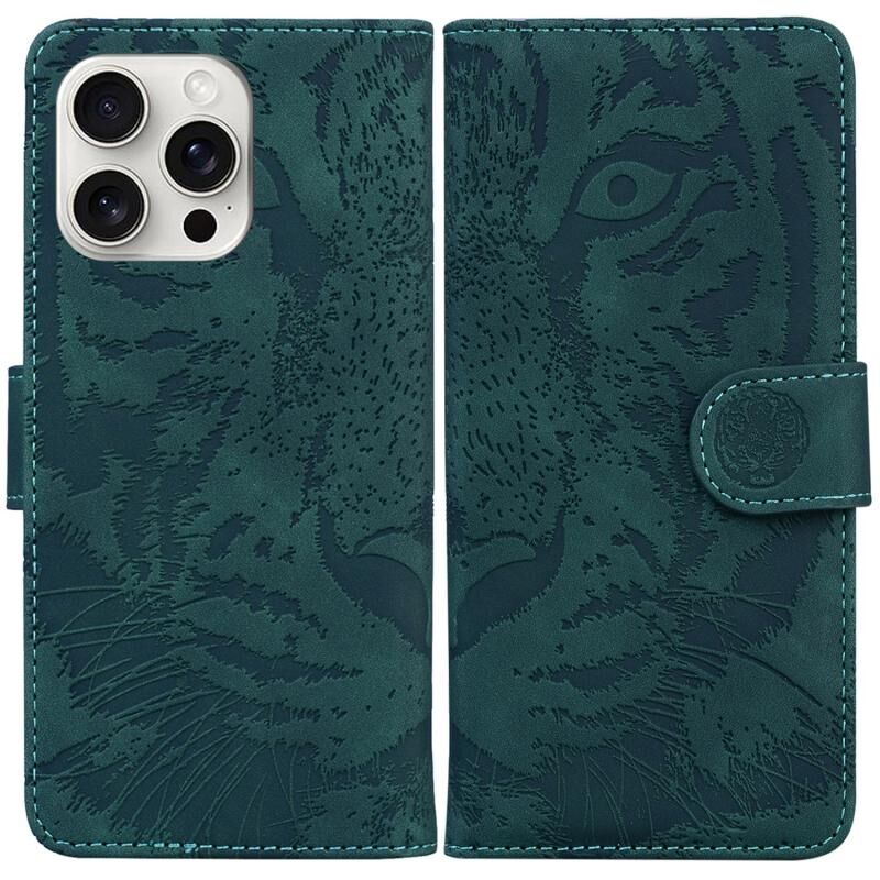 Θήκη τηλεφώνου από δέρμα με ανάγλυφο μοτίβο τίγρης για iPhone 16 Pro Max (Κόκκινο)