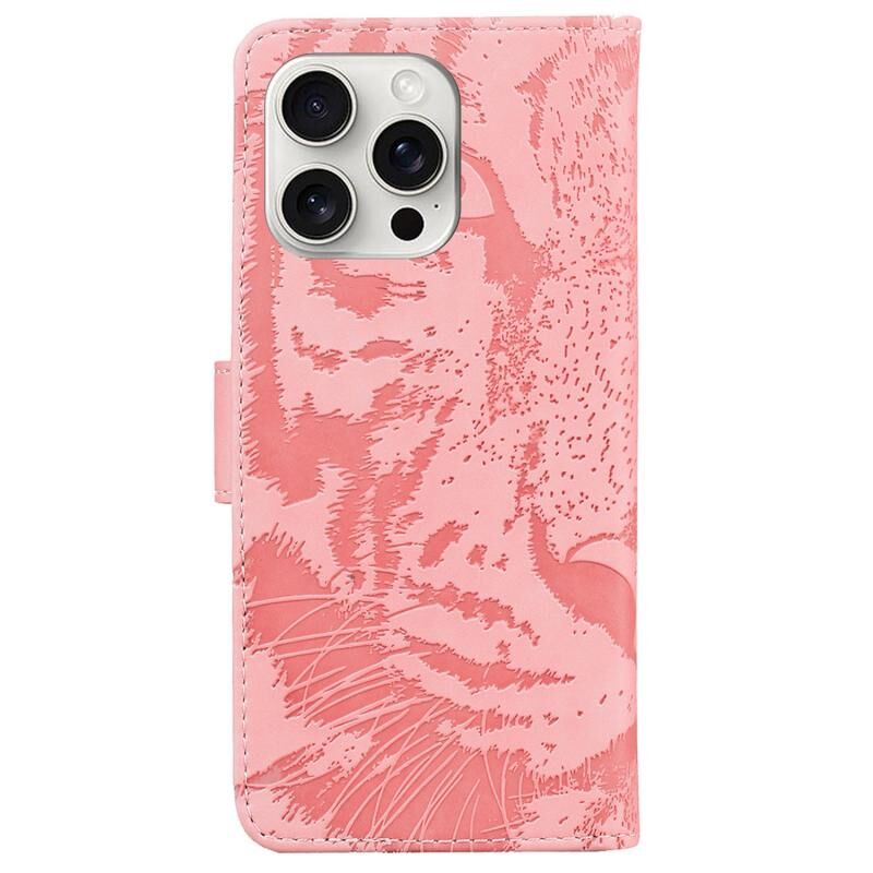 Θήκη τηλεφώνου από δέρμα με ανάγλυφο μοτίβο τίγρης για iPhone 16 Pro Max (Κόκκινο)