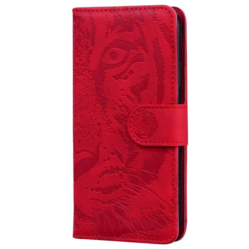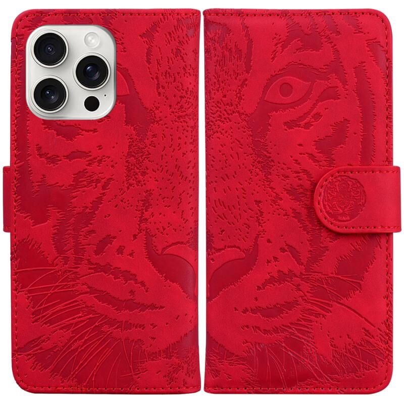 Θήκη τηλεφώνου από δέρμα με ανάγλυφο μοτίβο τίγρης για iPhone 16 Pro Max (Κόκκινο)