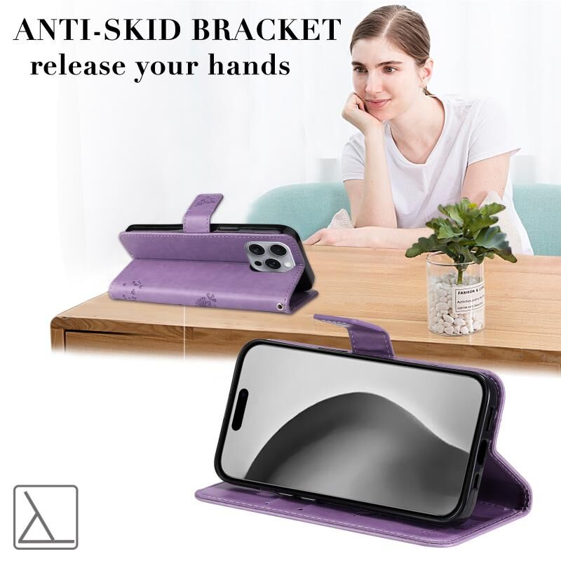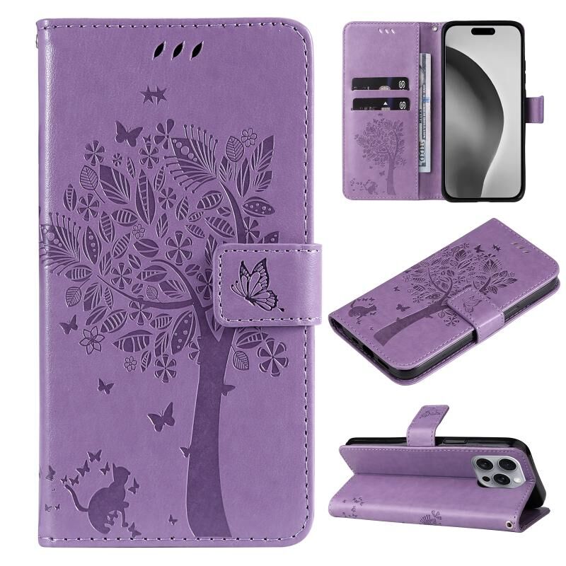 Θήκη τηλεφώνου από δέρμα με σχέδιο ανάγλυφου δέντρου & γάτας, τύπου flip, για iPhone 16 Pro Max (Πράσινο)