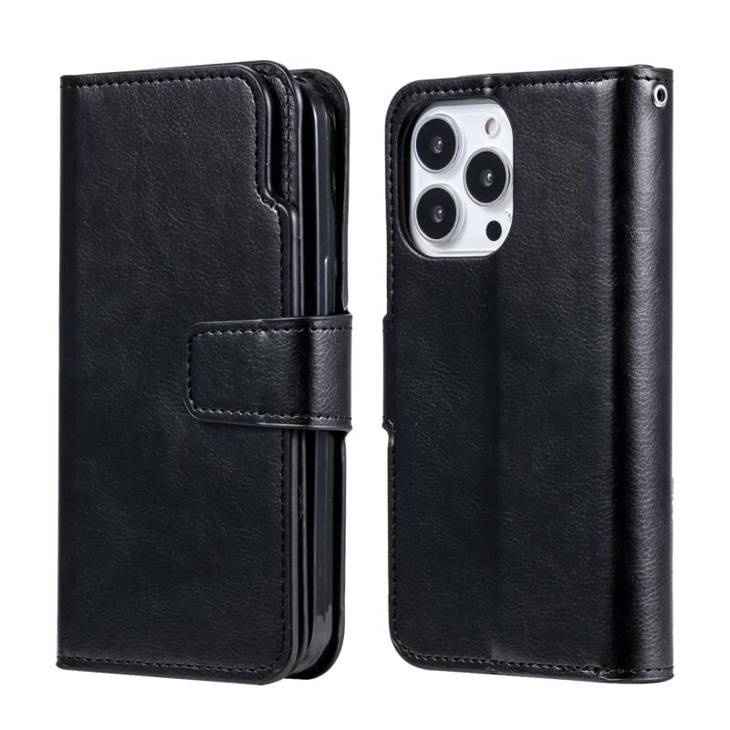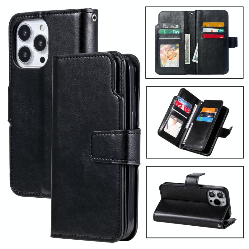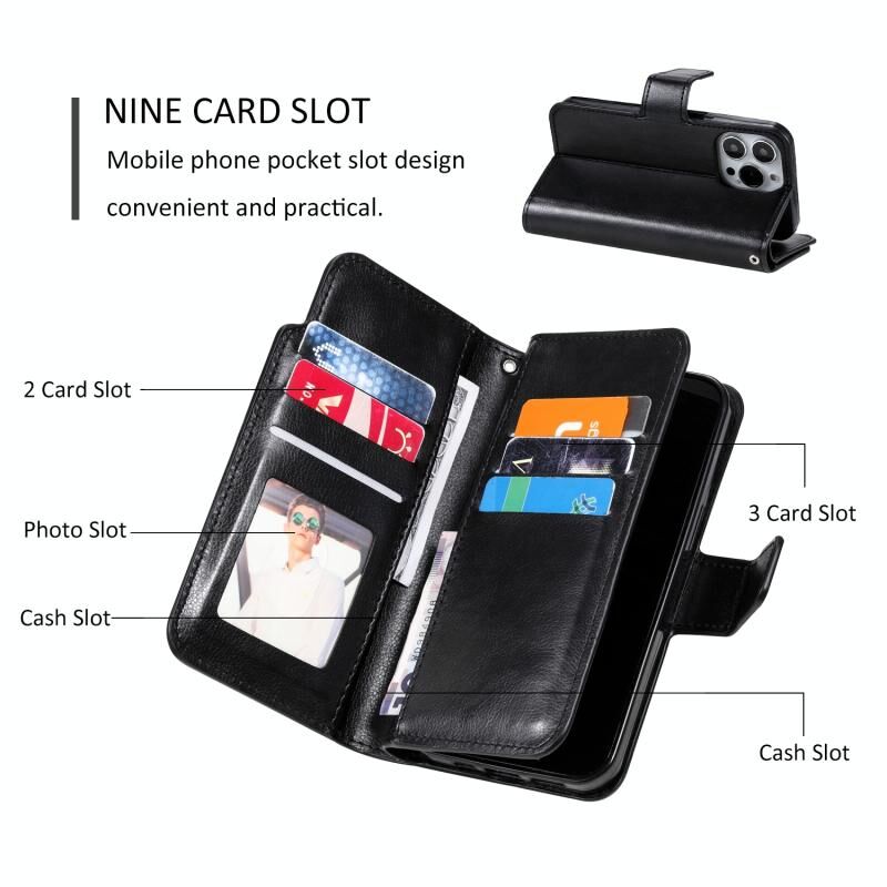 For iPhone 16 Pro Max Tri-Fold 9-Card Wallets Leather Phone Case(Black)