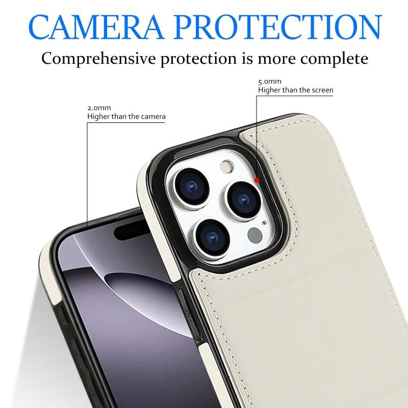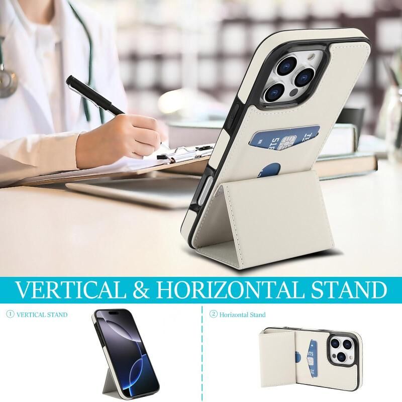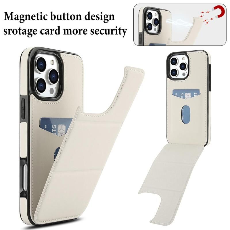 Θήκη τηλεφώνου από δέρμα για iPhone 16 Pro Max με τριπλή πτυχή και θήκη για κάρτες (Λευκό)