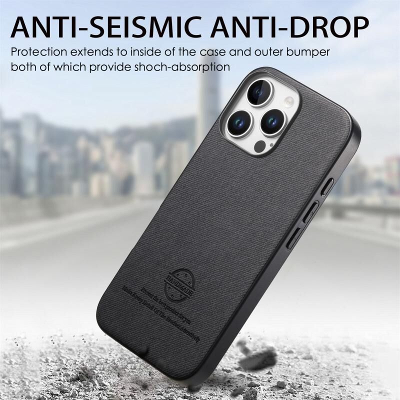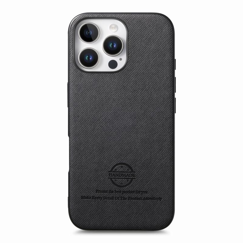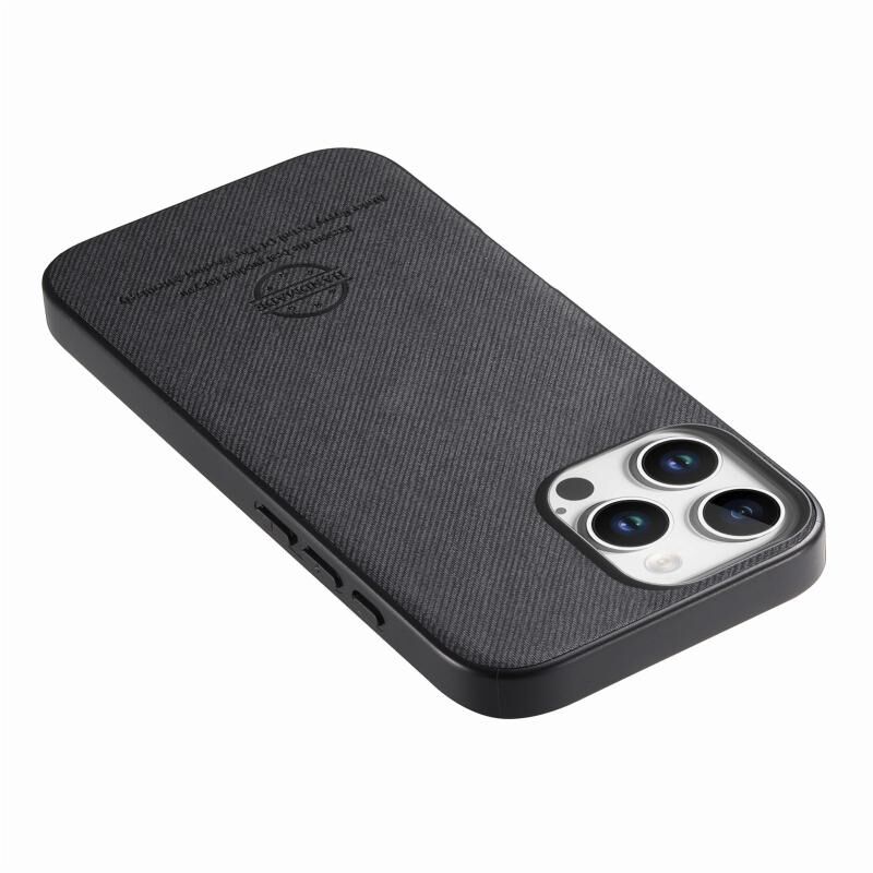 Θήκη κινητού τηλεφώνου για iPhone 16 Pro Max από ύφασμα Twill και δέρμα (Μπλε)