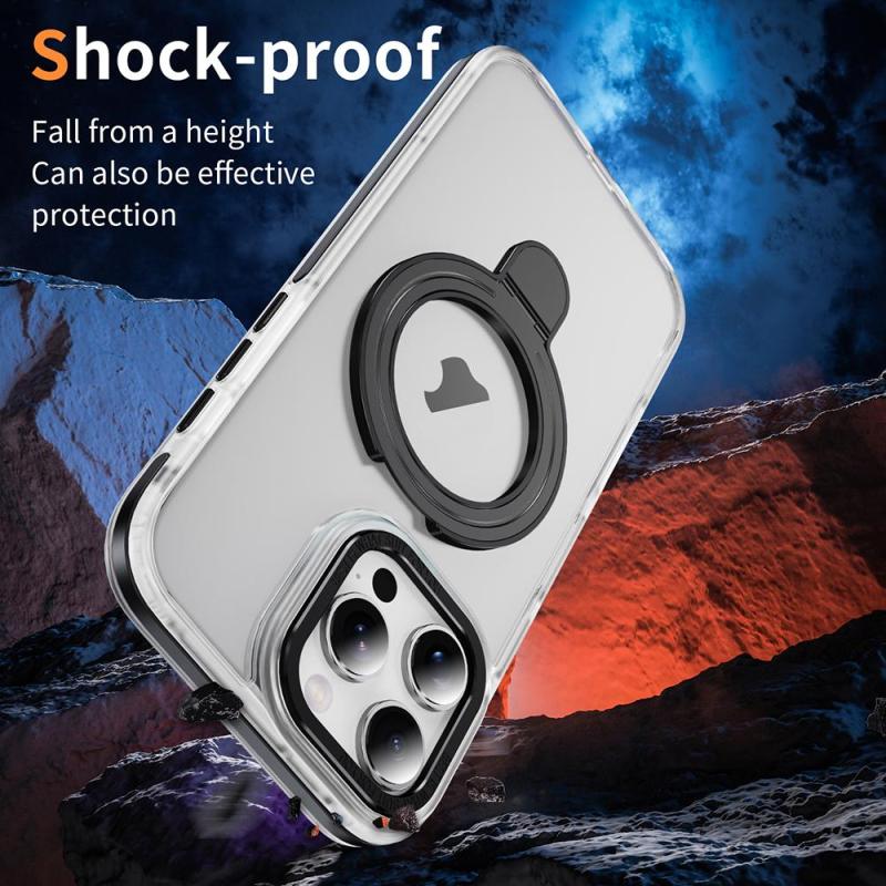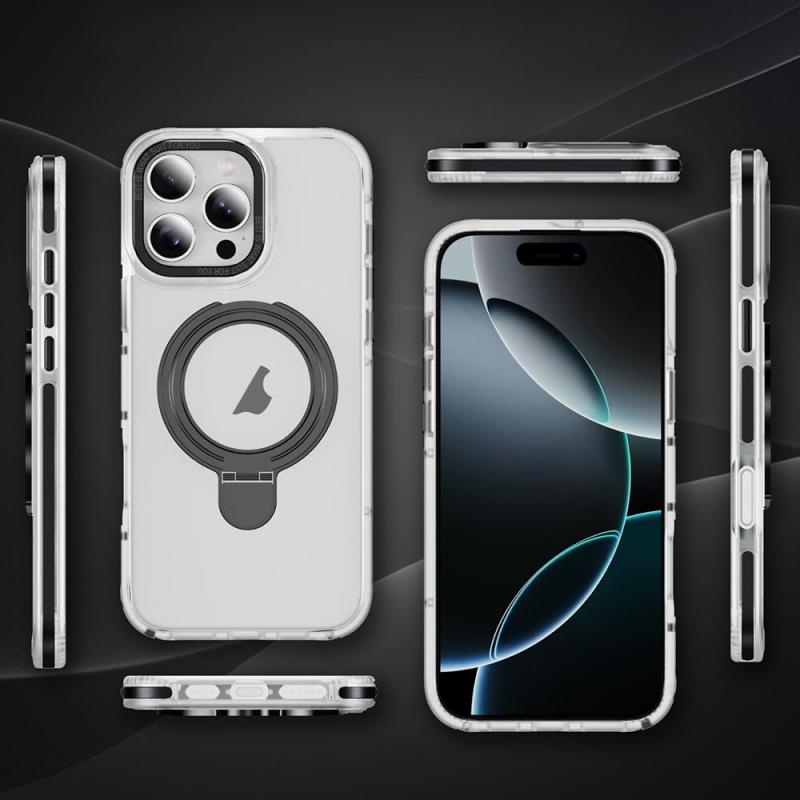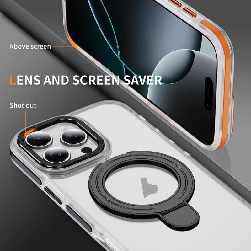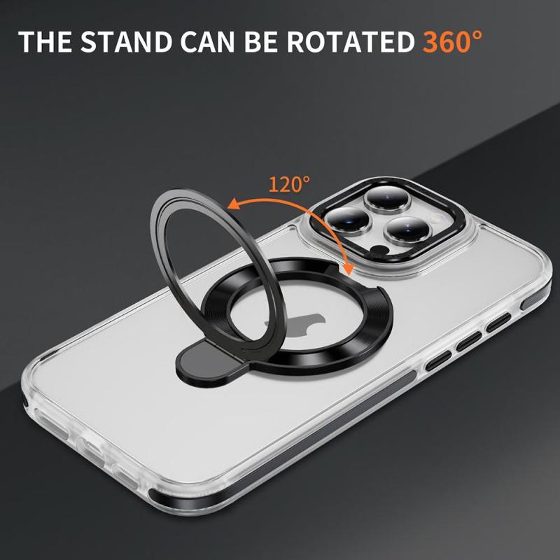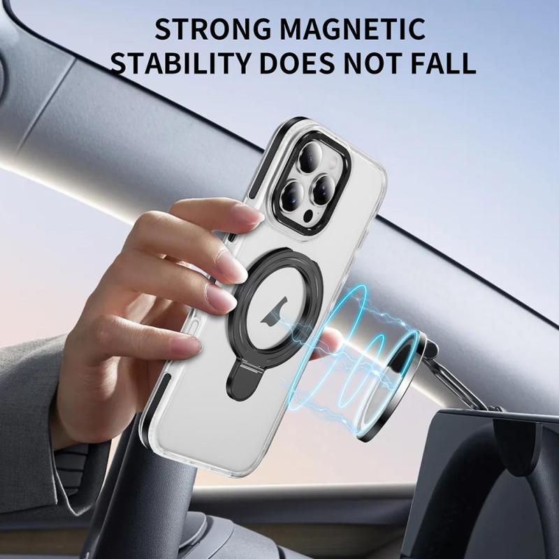 For iPhone 16 Pro Max Two Color TPU Hybrid Acrylic MagSafe Magnetic Holder Phone Case(Black)