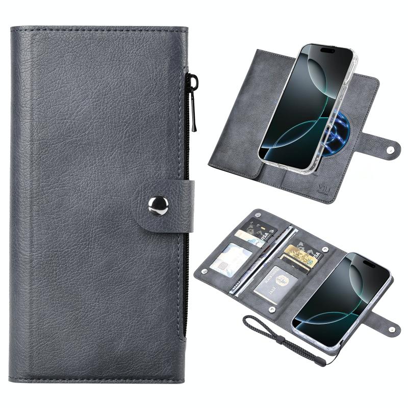For iPhone 16 Pro Max ViLi GVS-C Series MagSafe Magnetic RFID Leather Flip Phone Case(Grey) (ViLi)