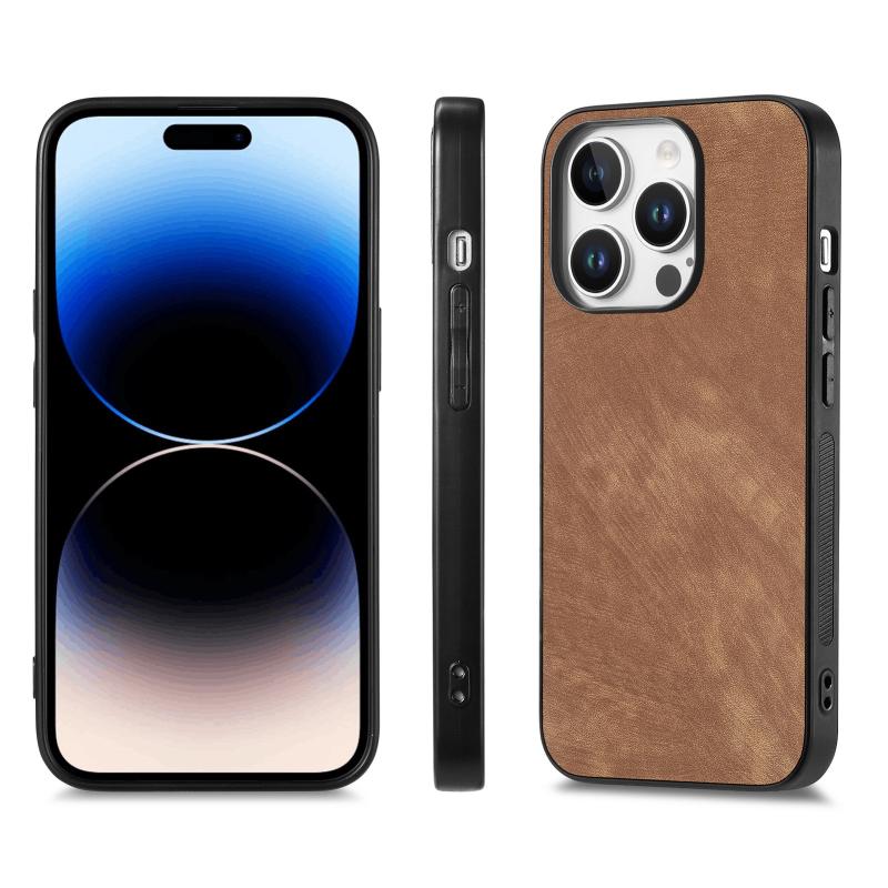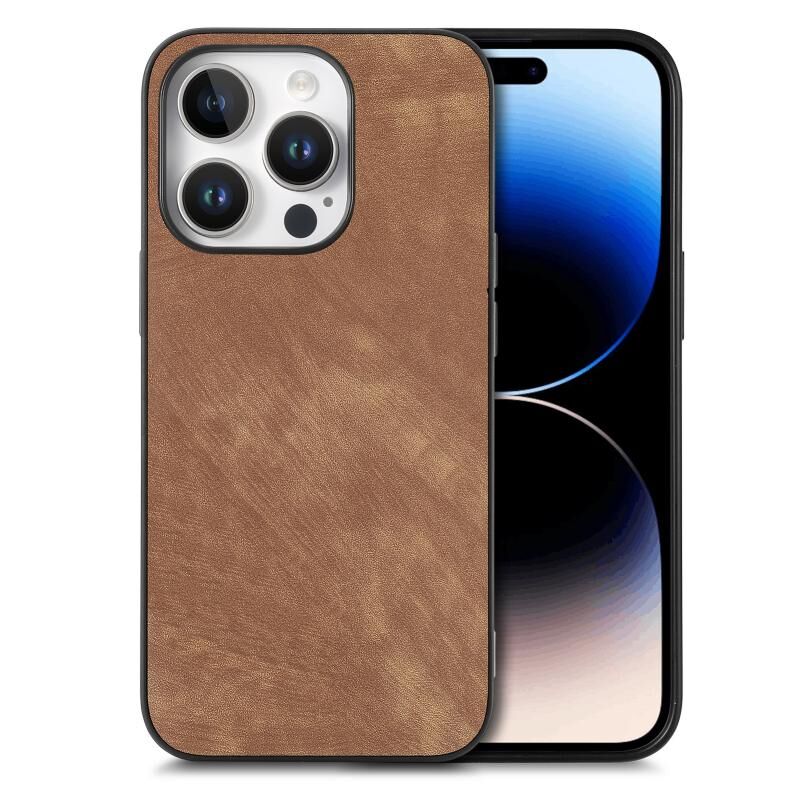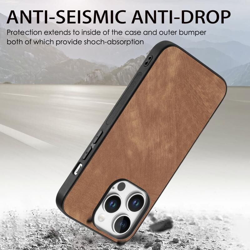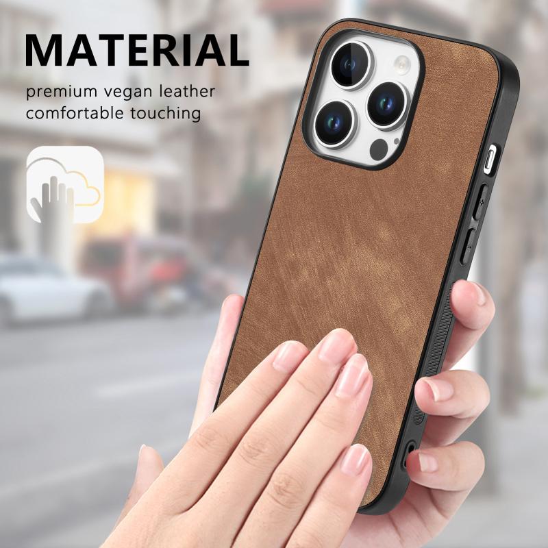 Θήκη κινητού τηλεφώνου για iPhone 16 Pro Max, πίσω κάλυμμα από δέρμα vintage και πολυανθρακικό (PC) (Μαύρο)