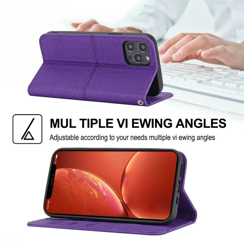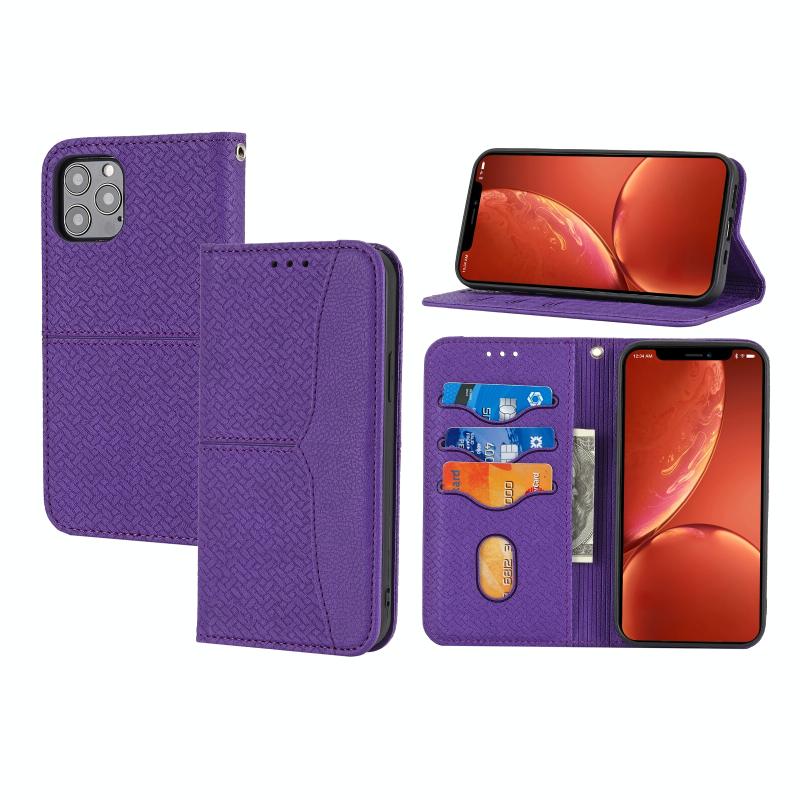For iPhone 16 Pro Max Woven Texture Stitching Magnetic Leather Phone Case(Purple)
