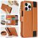 For iPhone 16 Pro Max Wristband Holder Zipper Purse RFID Leather Phone Case(Brown)