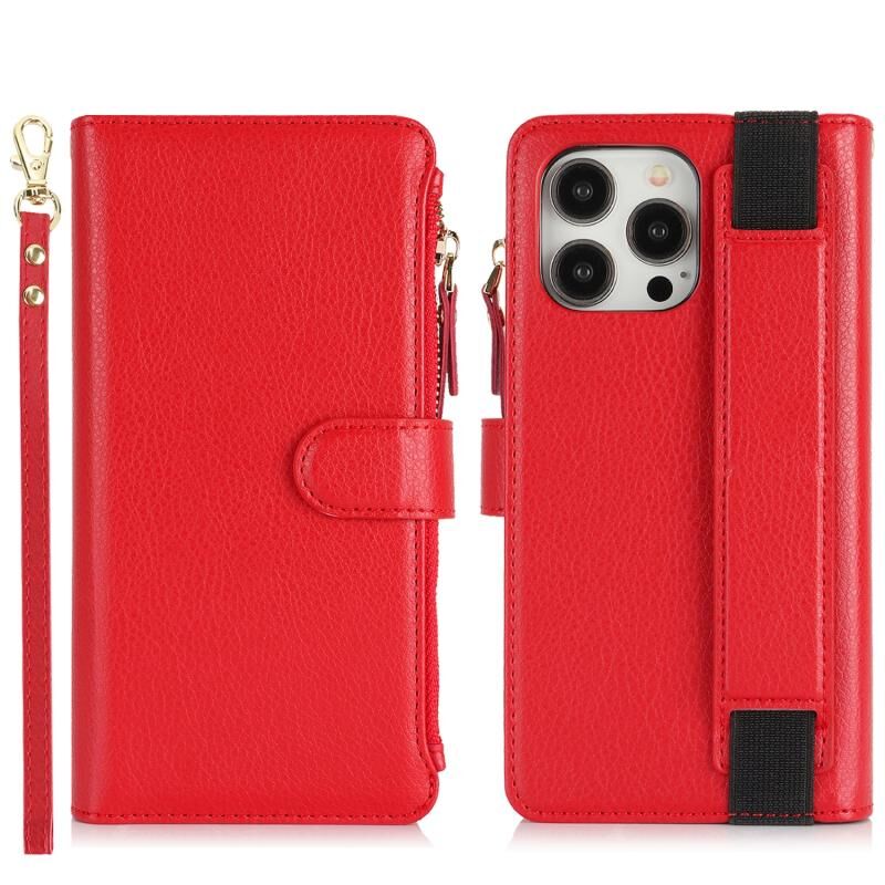 Θήκη για iPhone 16 Pro Max με Λουρί Χειρός, Πορτοφόλι με Φερμουάρ, Δέρμα με Προστασία RFID (Καφέ)