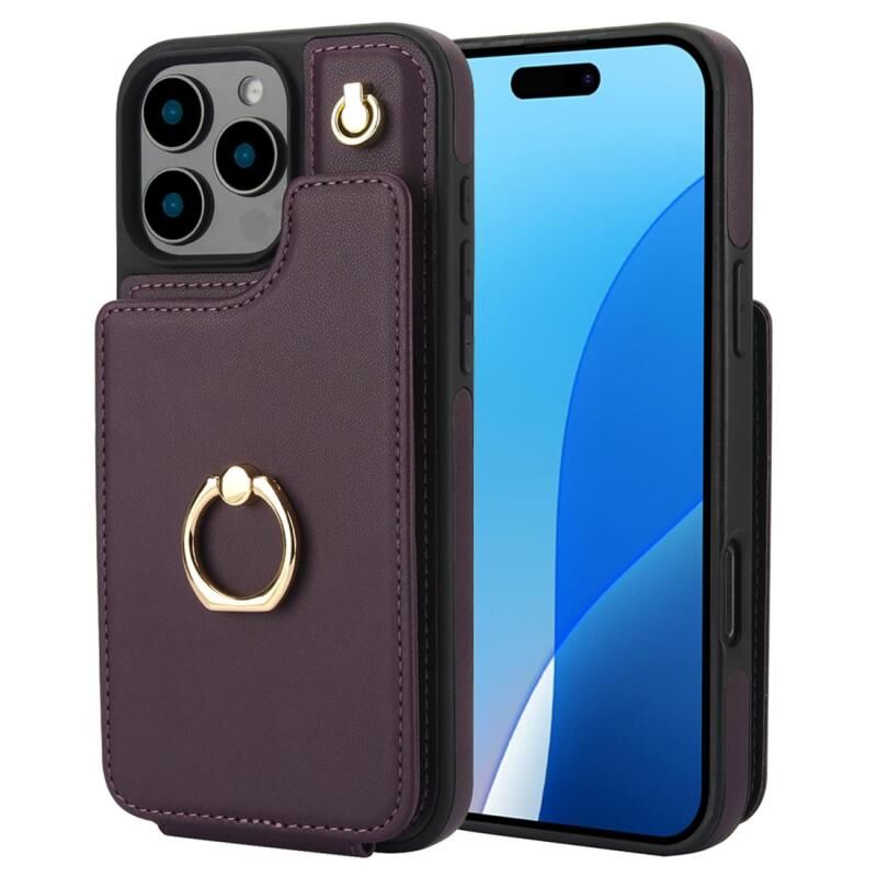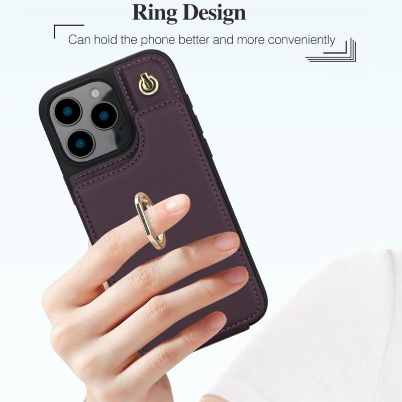 Θήκη κινητού τηλεφώνου με αίσθηση δέρματος YM005 για iPhone 16 Pro Max με θήκη καρτών και μακρύ κορδόνι (Σκούρο μωβ)