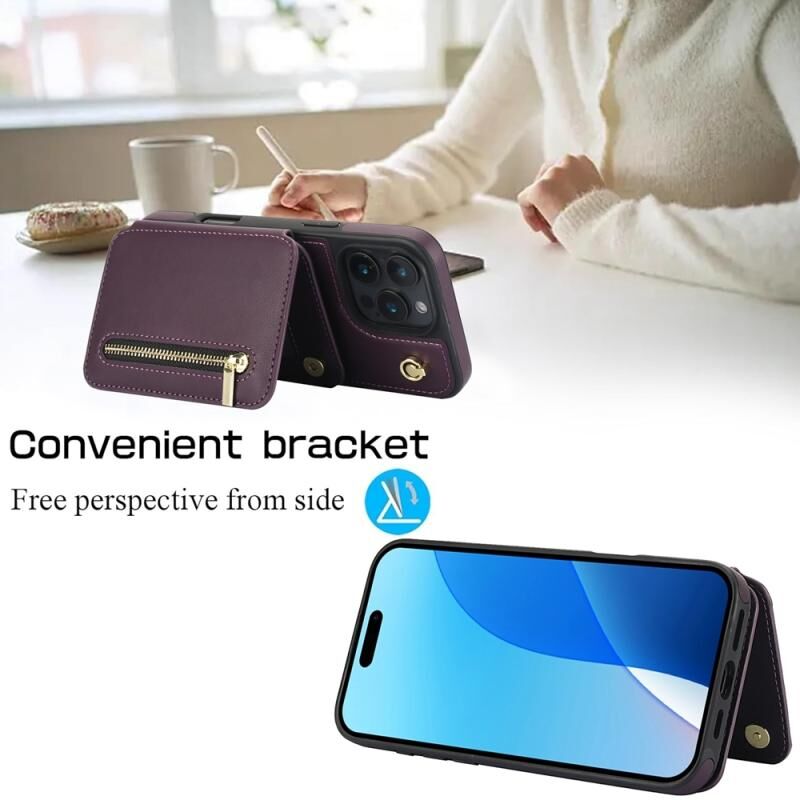 Θήκη κινητού τηλεφώνου με φερμουάρ και διπλό κορδόνι για iPhone 16 Pro Max YM006, με αίσθηση δέρματος (βαθύ μωβ)