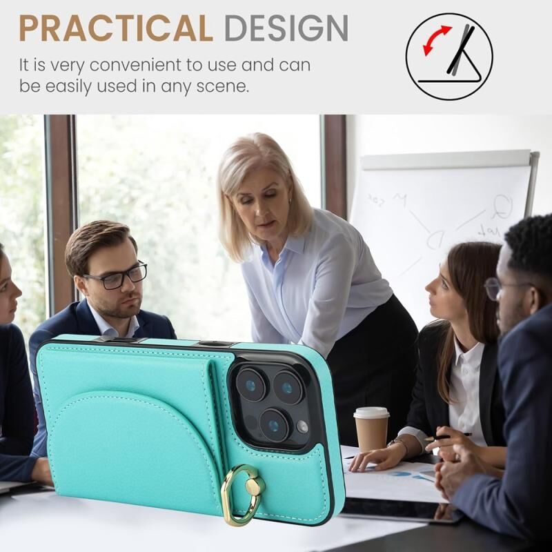 Θήκη κινητού τηλεφώνου με δακτύλιο και θήκη κάρτας για iPhone 16 Pro Max YM007, αίσθηση δέρματος (Πράσινο)