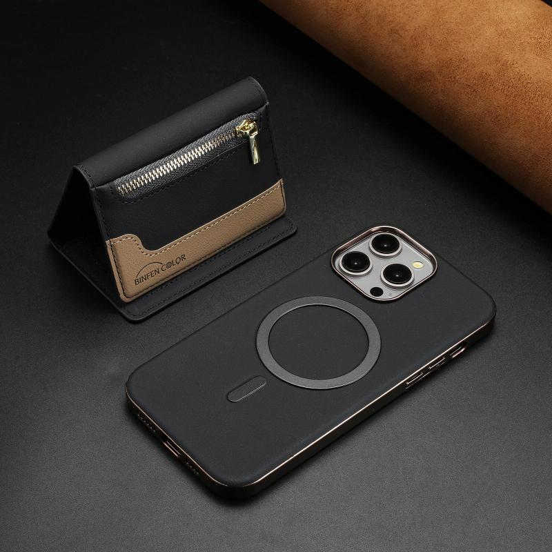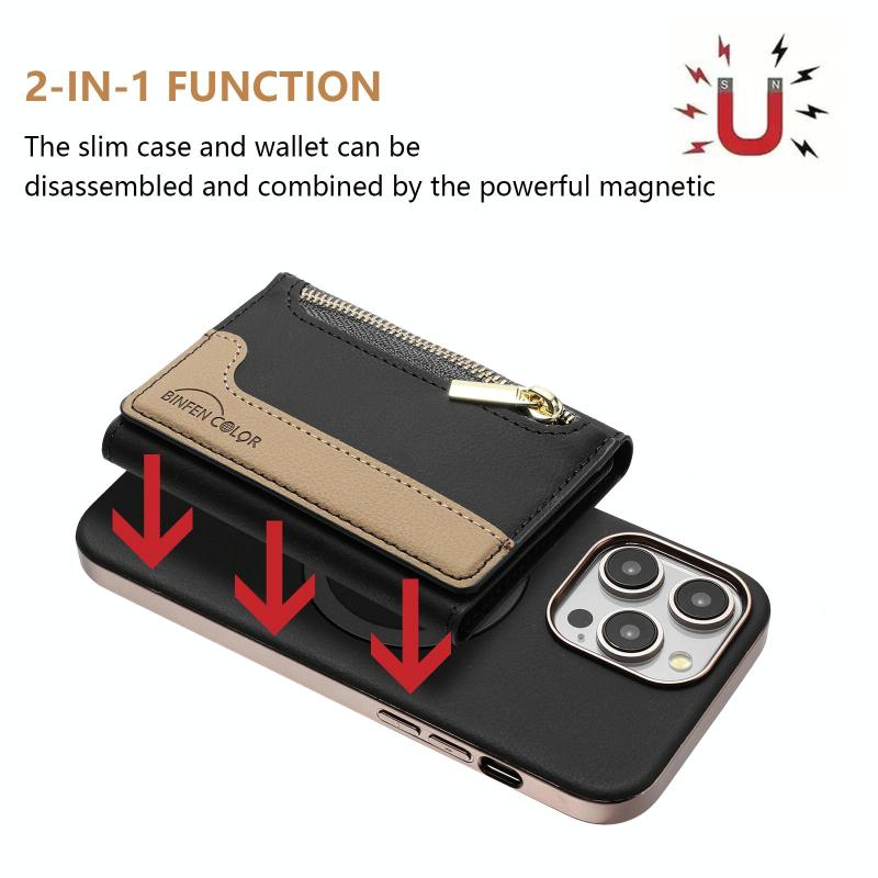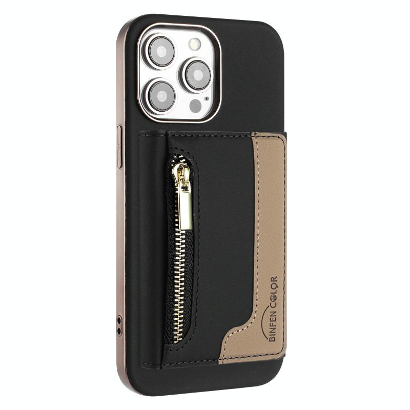 For iPhone 16 Pro Max Zipper Horizontal Magnetic Card Bag RFID MagSafe Phone Case(Black)