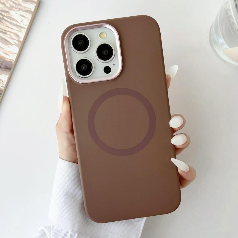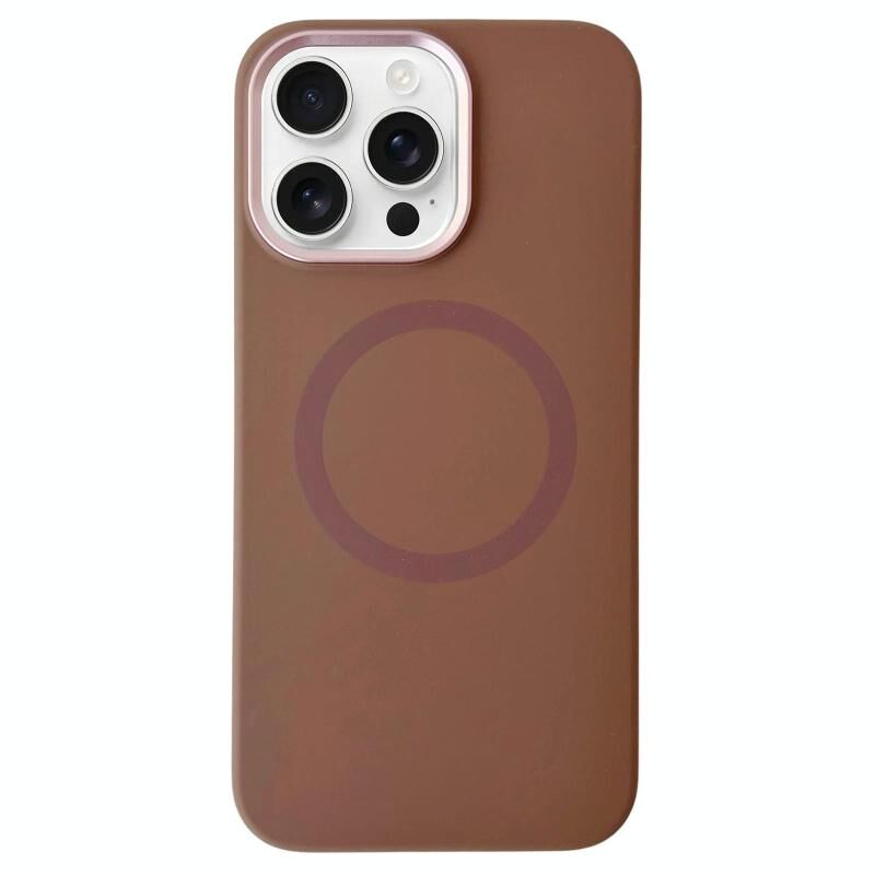 For iPhone 16 Pro Metal Frame Liquid Silicone MagSafe Phone Case(Gold Brown)