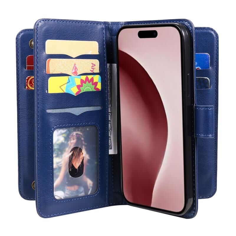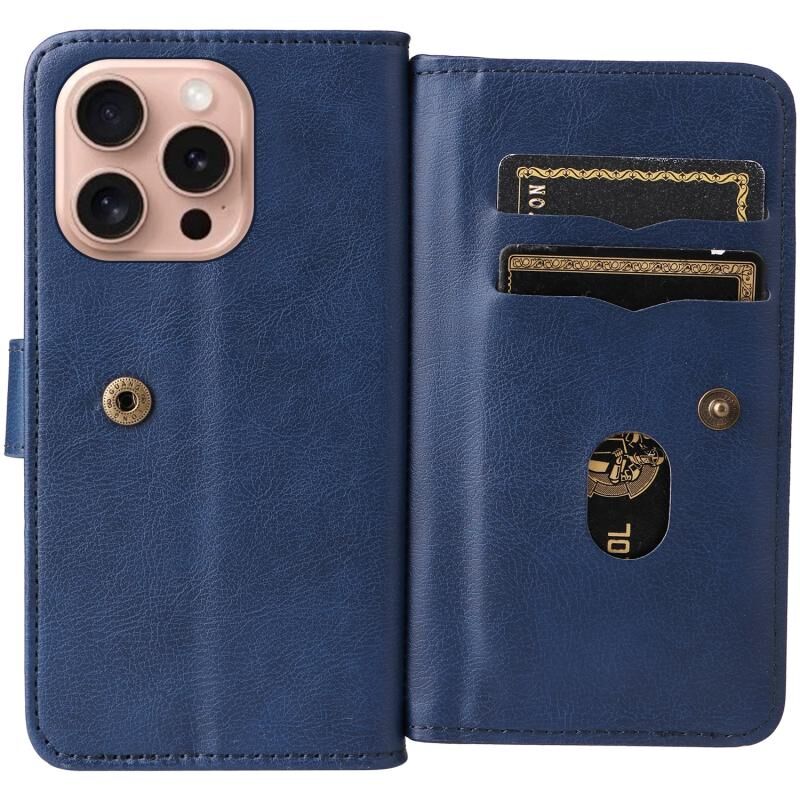 Θήκη τηλεφώνου πολλαπλών λειτουργιών για iPhone 16 Pro, Δερμάτινο πορτοφόλι με 10 υποδοχές για κάρτες (Σκούρο Πράσινο)