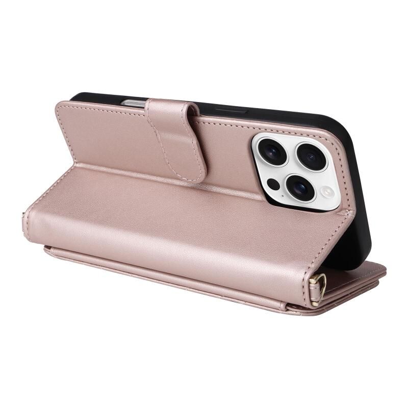 For iPhone 16 Pro Multifunctional 6-Card Slots Leather Phone Case with Wrist Strap(Pink)
