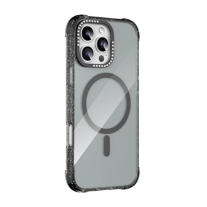 For iPhone 16 Pro Mutural Blink Series Glitter Edge MagSafe Magnetic Phone Case(Black) (Mutural)