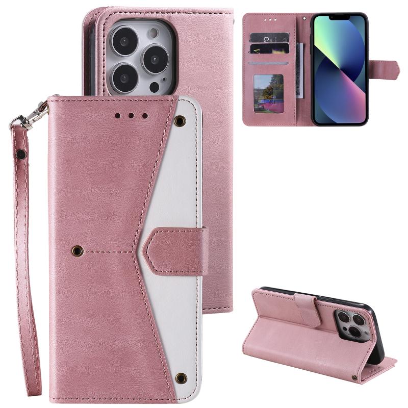 For iPhone 16 Pro Nail Skin Feel Stitching Calf Texture Leather Phone Case(Rose Gold)
