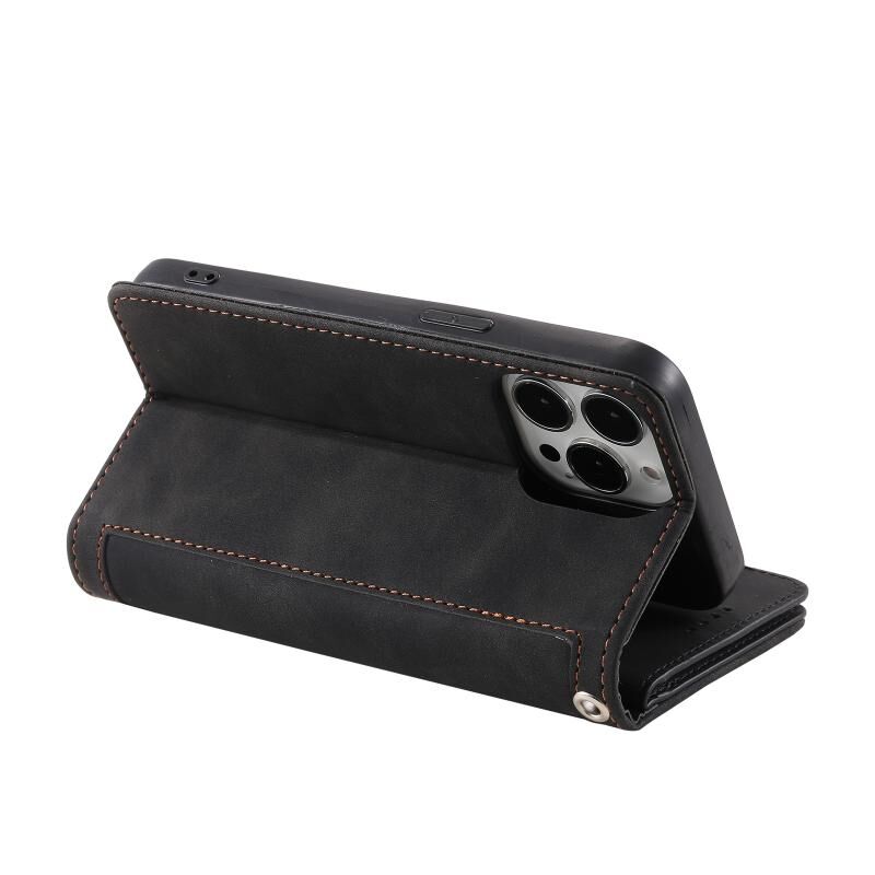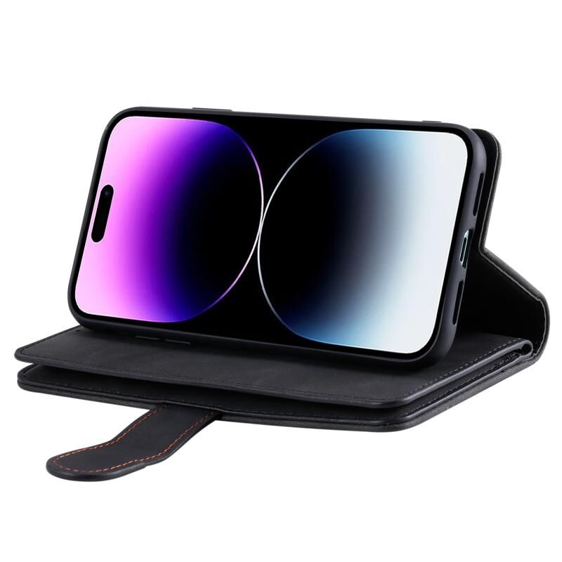 For iPhone 16 Pro Nine Card Zipper Bag Leather Phone Case with Lanyard(Black)